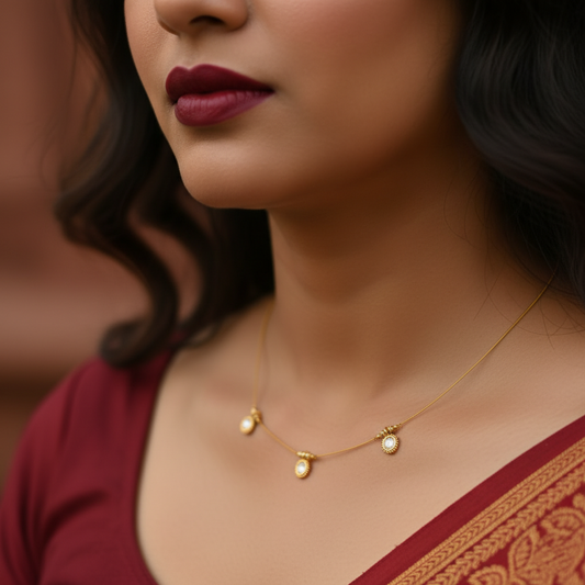 Gold-plated Invisible Chain Necklace With Three Small Decorative Pendants