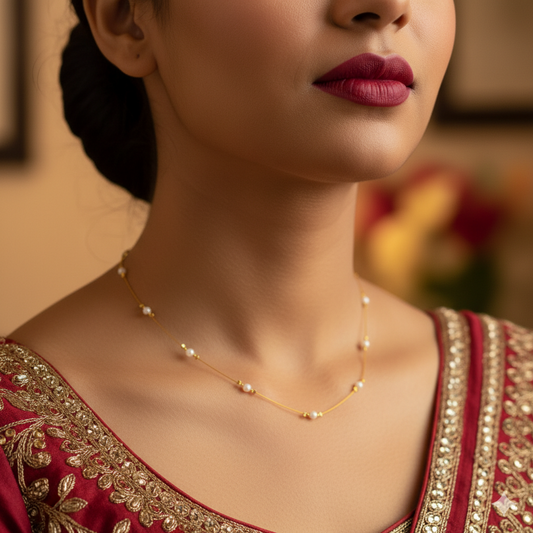 Invisible Chain Pearl And Gold-Toned Bead Necklace.