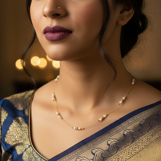 Invisible Chain Pearl And Gold-Toned Bead Necklace.