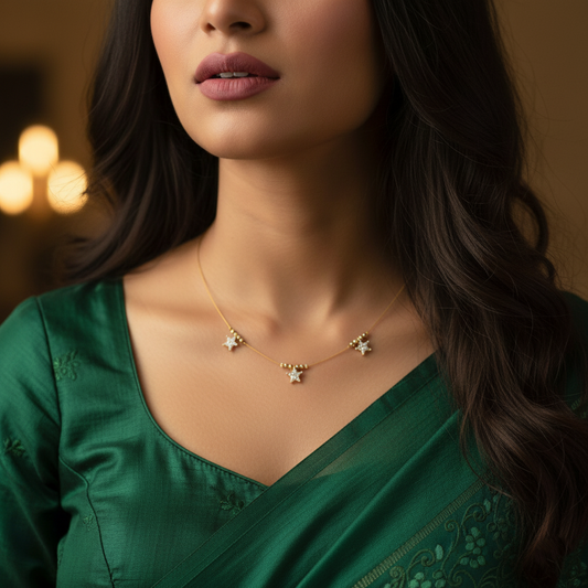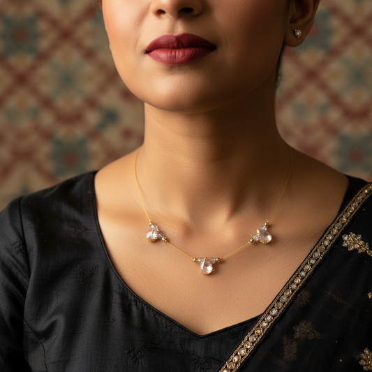 Gold-plated Invisible Chain Necklace With Three Small Decorative Pendants